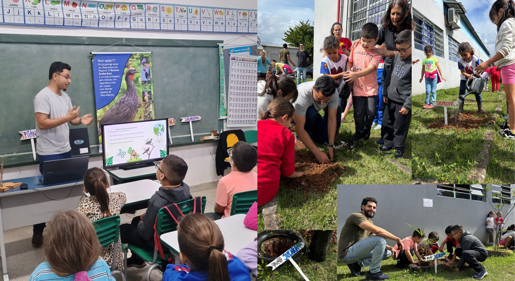Durante a atividade, as crianças plantaram mudas de grumixama, palmeira juçara e pitangueira, enquanto aprendiam, de forma lúdica, sobre a função ecológica de cada espécie. As explicações destacaram a importância da vegetação nativa na preservação de rios, na alimentação da fauna e na promoção da biodiversidade.