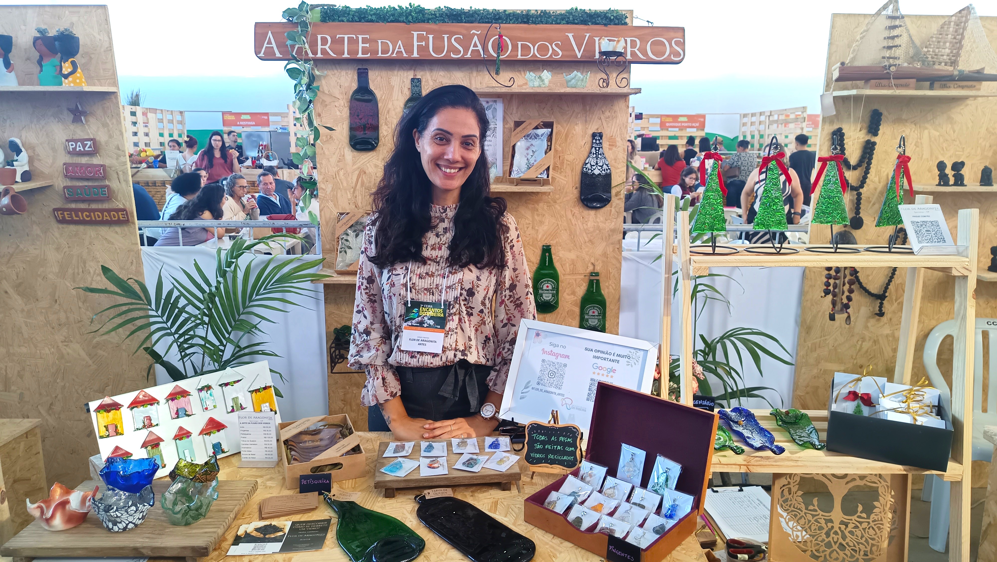 Artesã em Iporanga, Janayna Franco trabalha com vidro reciclado em seu Ateliê Flor de Aragonita. Para a COP 30, ela enviou petisqueiras, incensários e pingentes — incluindo dez peças nas cores da bandeira brasileira que serão entregues como presente a autoridades, entre elas a ministra do Meio Ambiente, Marina Silva.