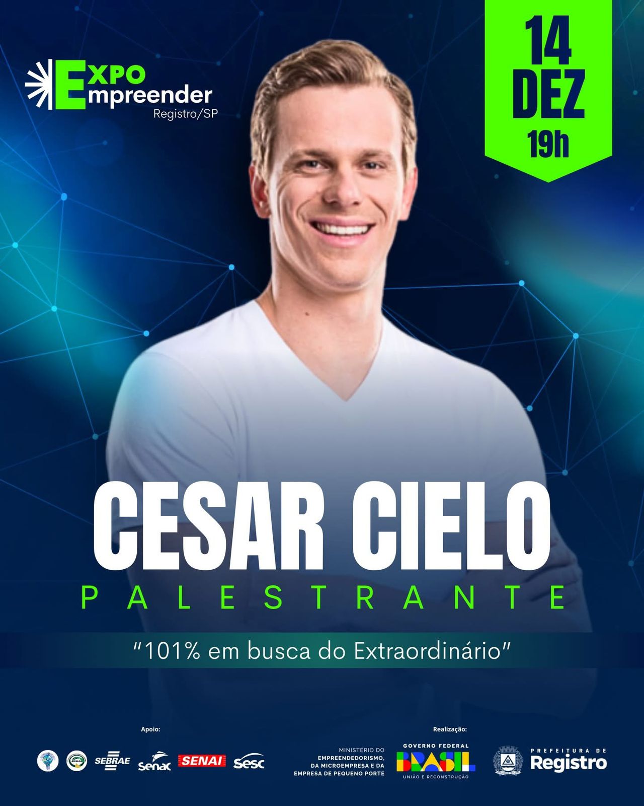 Registro (SP) - A Expo Empreender de Registro 2025 recebe no domingo (14), às 19h, o medalhista olímpico Cesar Cielo para a palestra “101% em Busca do Extraordinário”. O atleta vai detalhar princípios de disciplina, foco e excelência utilizados em sua carreira no alto rendimento e que podem ser aplicados ao empreendedorismo e ao desempenho profissional.