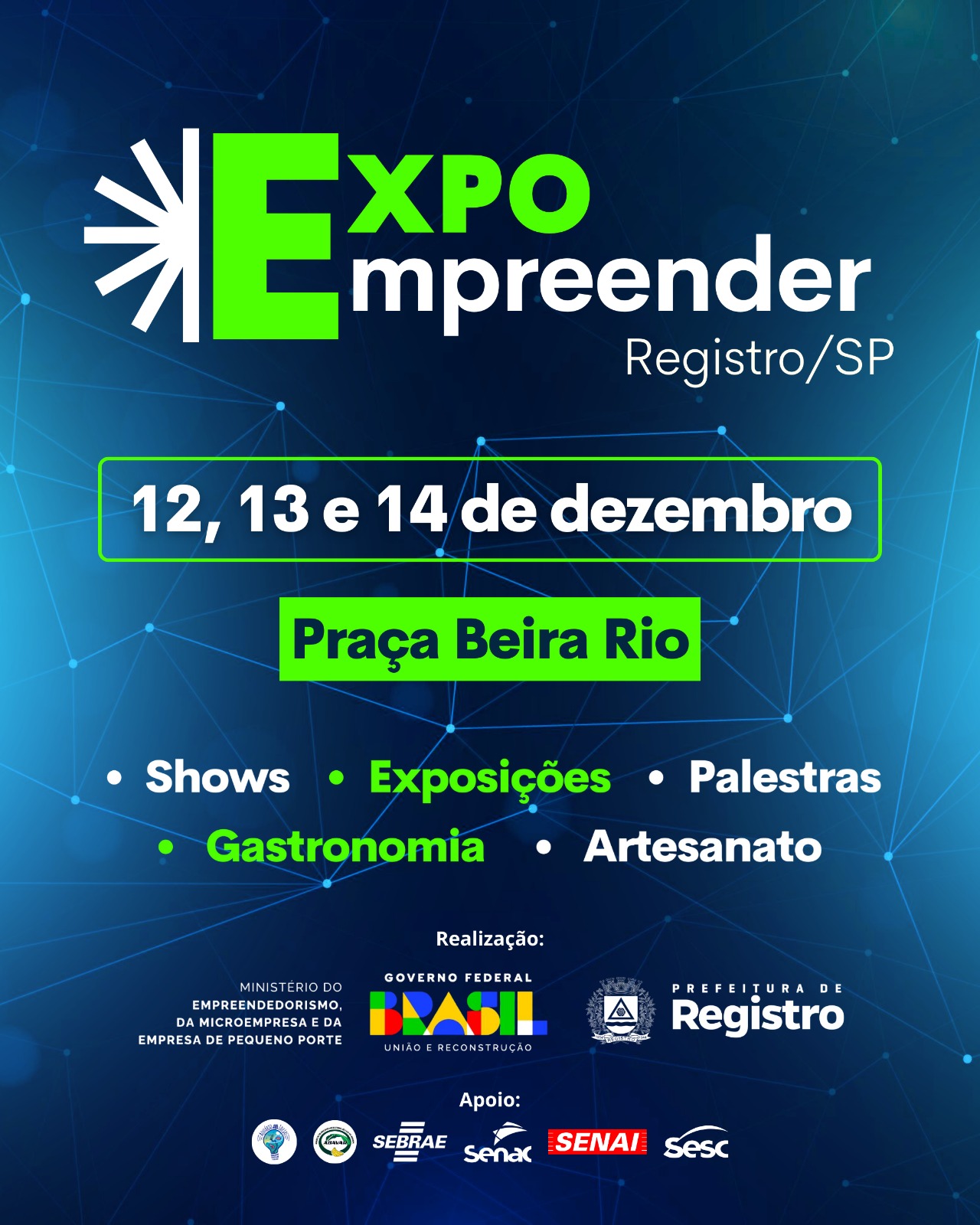 A Expo Empreender é promovida pela Prefeitura de Registro, por meio da Secretaria Municipal de Desenvolvimento Econômico, em parceria com o Ministério do Empreendedorismo, da Micro e Pequena Empresa e das Empresas de Pequeno Porte. O evento conta com apoio de SESC, SENAC, SENAI, Sebrae, ABAVAR e Aquário de Ideias.