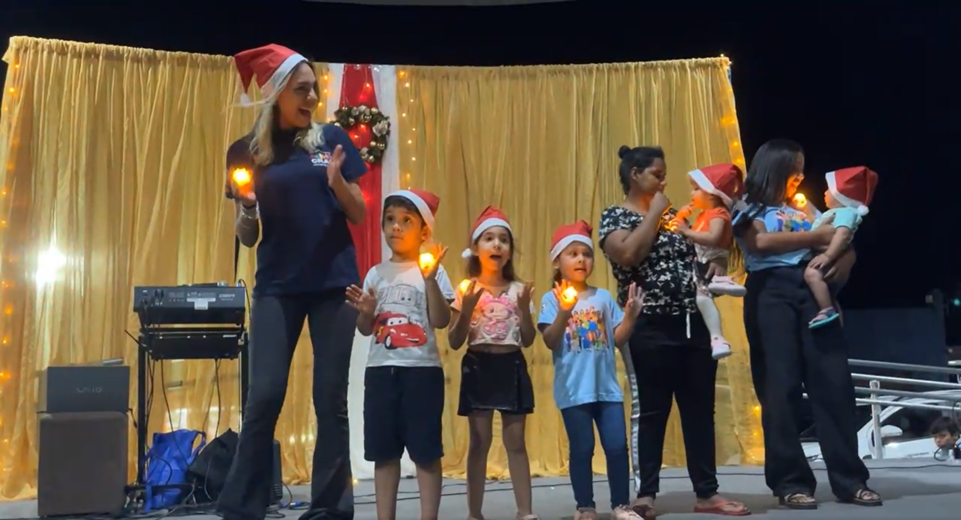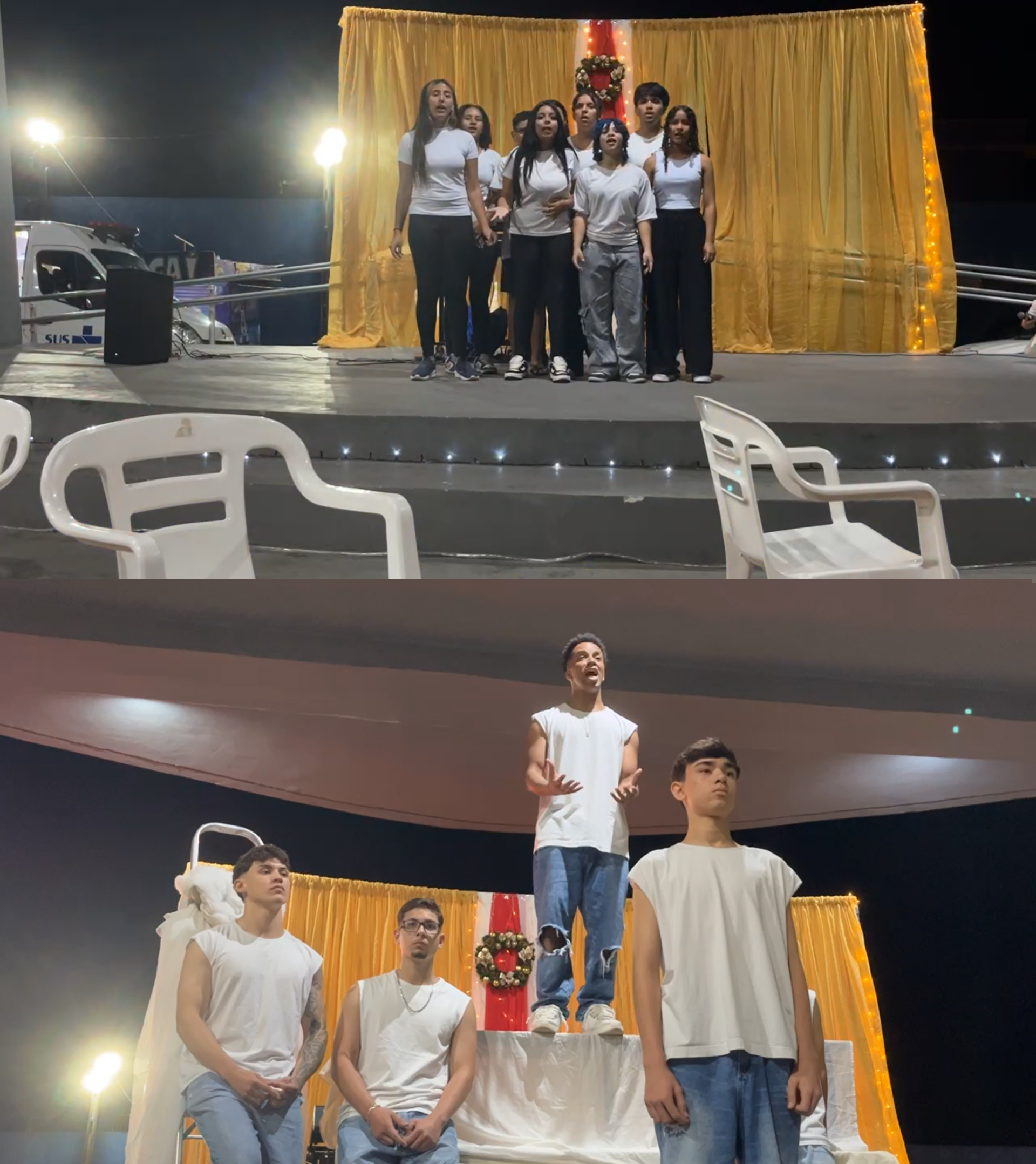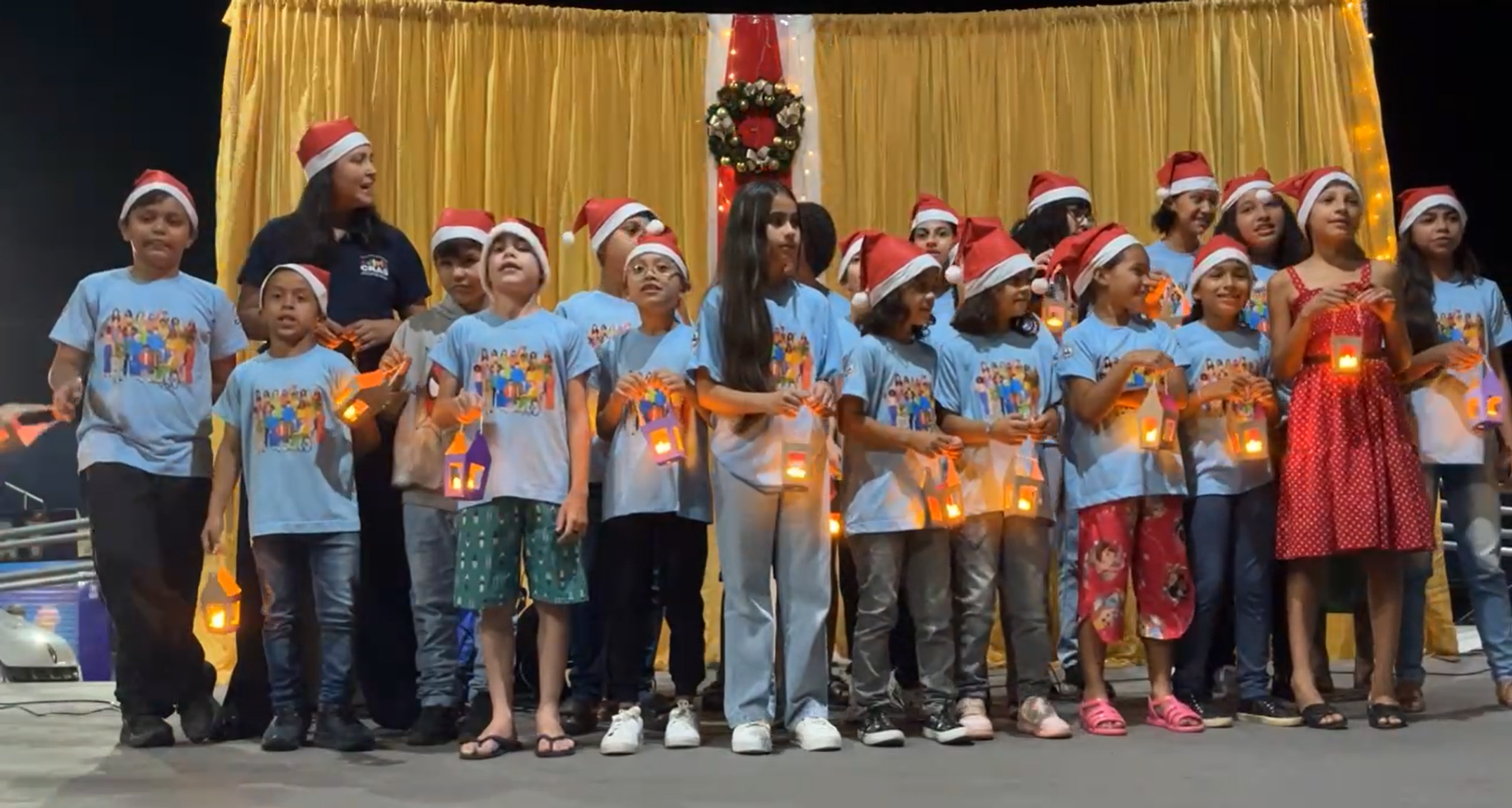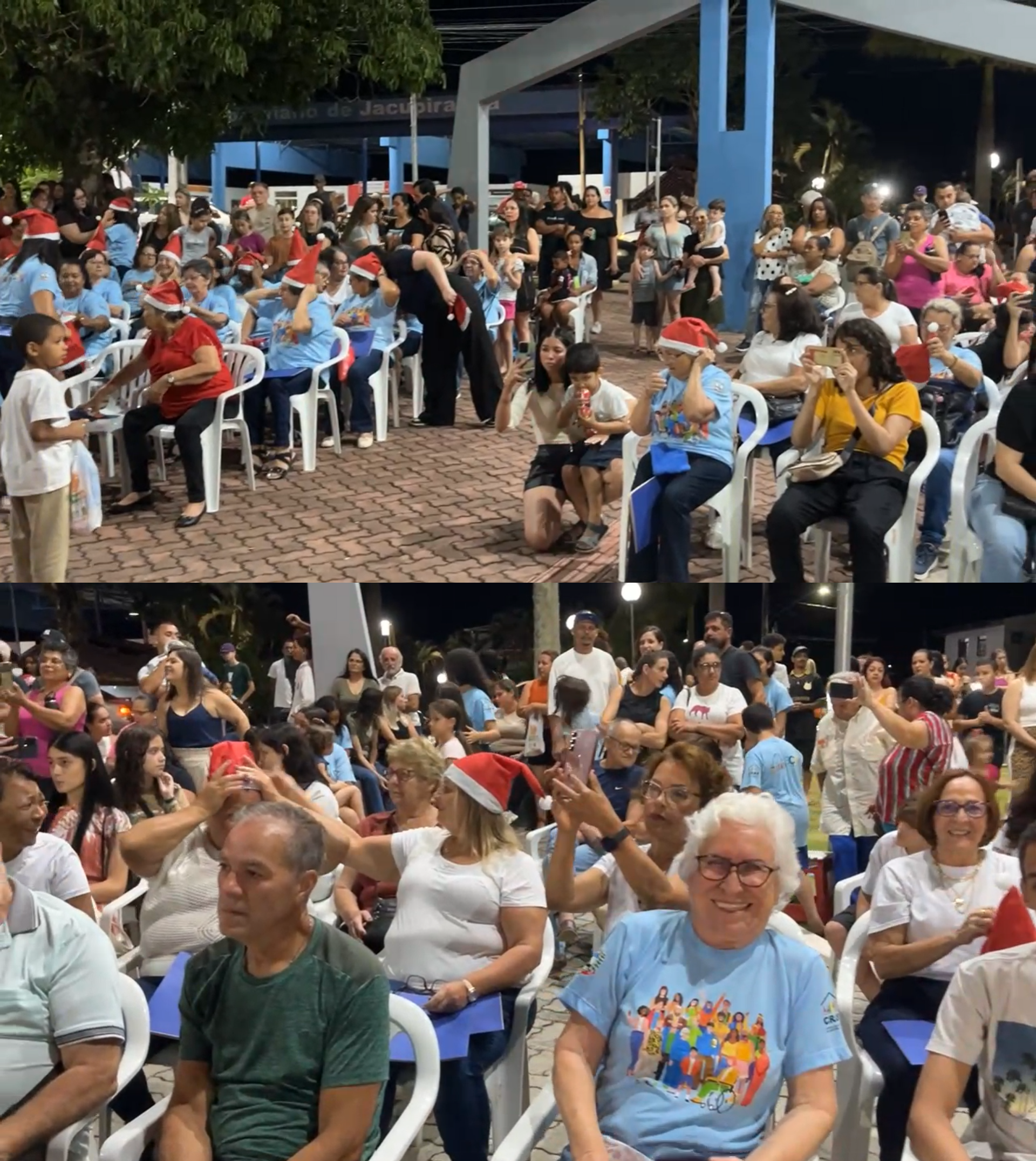 Um dos momentos mais simbólicos ocorreu por volta das 20h45, quando todos os grupos se reuniram no palco para cantar “A Paz”, simbolizando a integração entre faixas etárias e destacando a proposta de convivência coletiva que norteia a atuação do CRAS.