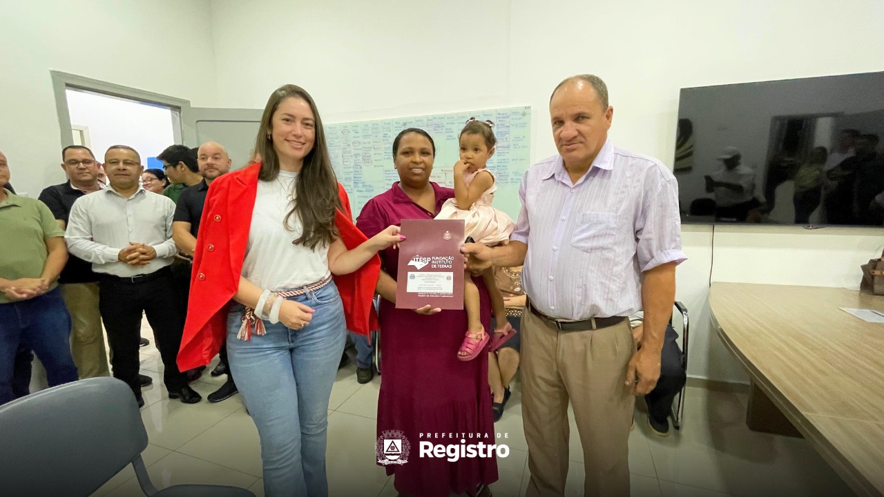 A Prefeitura de Registro (SP), em parceria com a Fundação Instituto de Terras do Estado de São Paulo (ITESP), entregou na última quarta-feira (5) 31 títulos de propriedade a famílias de quatro bairros do município. A ação faz parte do Programa de Regularização Fundiária Urbana (Reurb), que tem como objetivo garantir segurança jurídica, valorização imobiliária e o direito à moradia para moradores de áreas consolidadas.