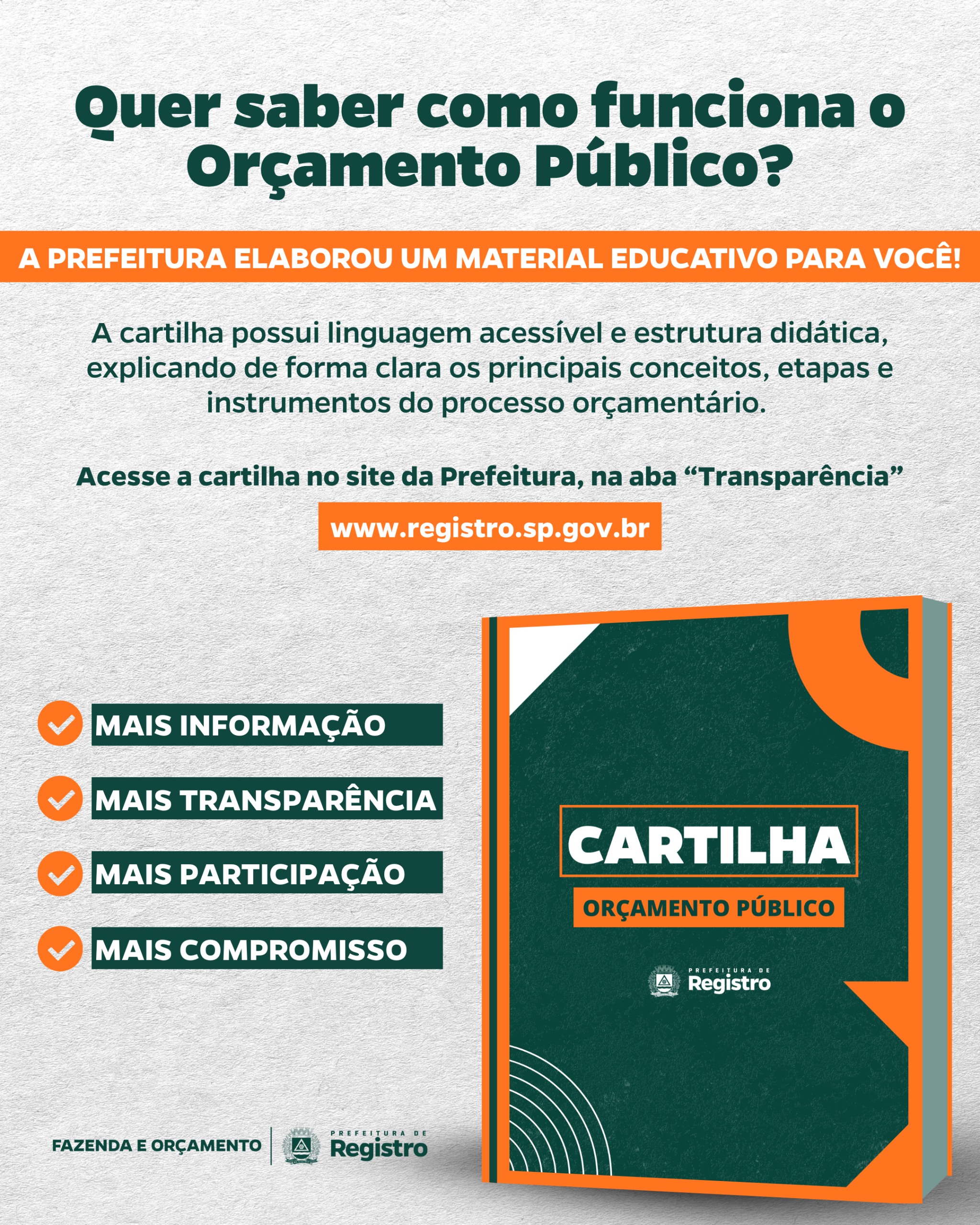 - Acesse aqui: Cartilha do Orçamento Público de Registro (PDF)
