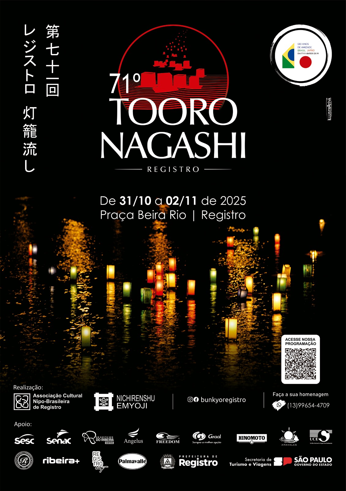 A cidade de Registro, no Vale do Ribeira (SP), se prepara para receber a 71ª edição do Tooro Nagashi, o mais tradicional festival japonês do Brasil e um dos maiores eventos culturais do interior paulista. A celebração, que une religiosidade, arte, cultura e gastronomia, acontece entre os dias 31 de outubro e 2 de novembro e deve atrair um público estimado em mais de 25 mil pessoas — o equivalente a quase metade da população do município.