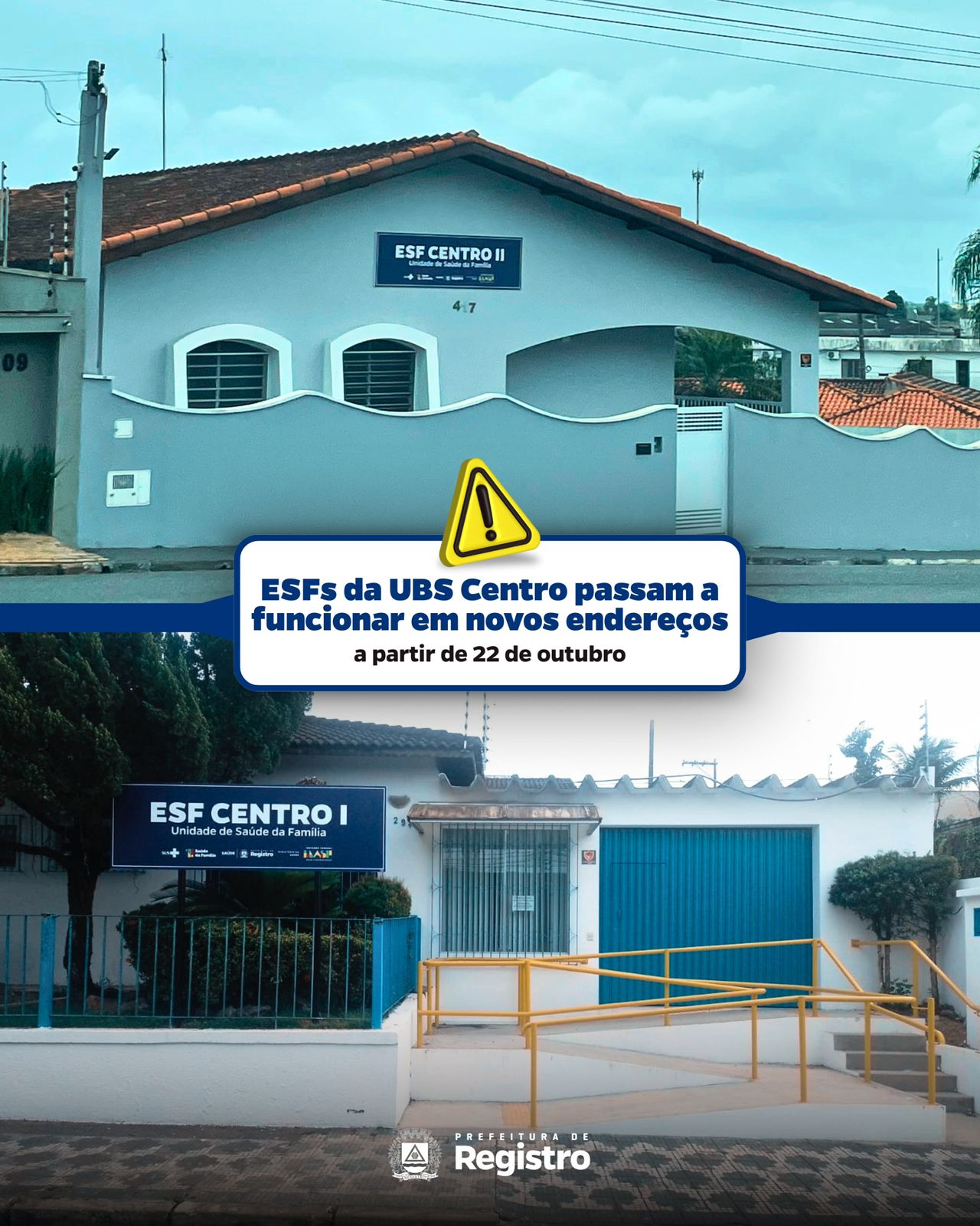 A Prefeitura de Registro, no interior de São Paulo, por meio da Secretaria Municipal de Saúde, anunciou que os atendimentos das equipes de Estratégia de Saúde da Família (ESF) que funcionavam na Unidade Básica de Saúde (UBS) Centro serão transferidos para novos endereços a partir desta quarta-feira (22).
