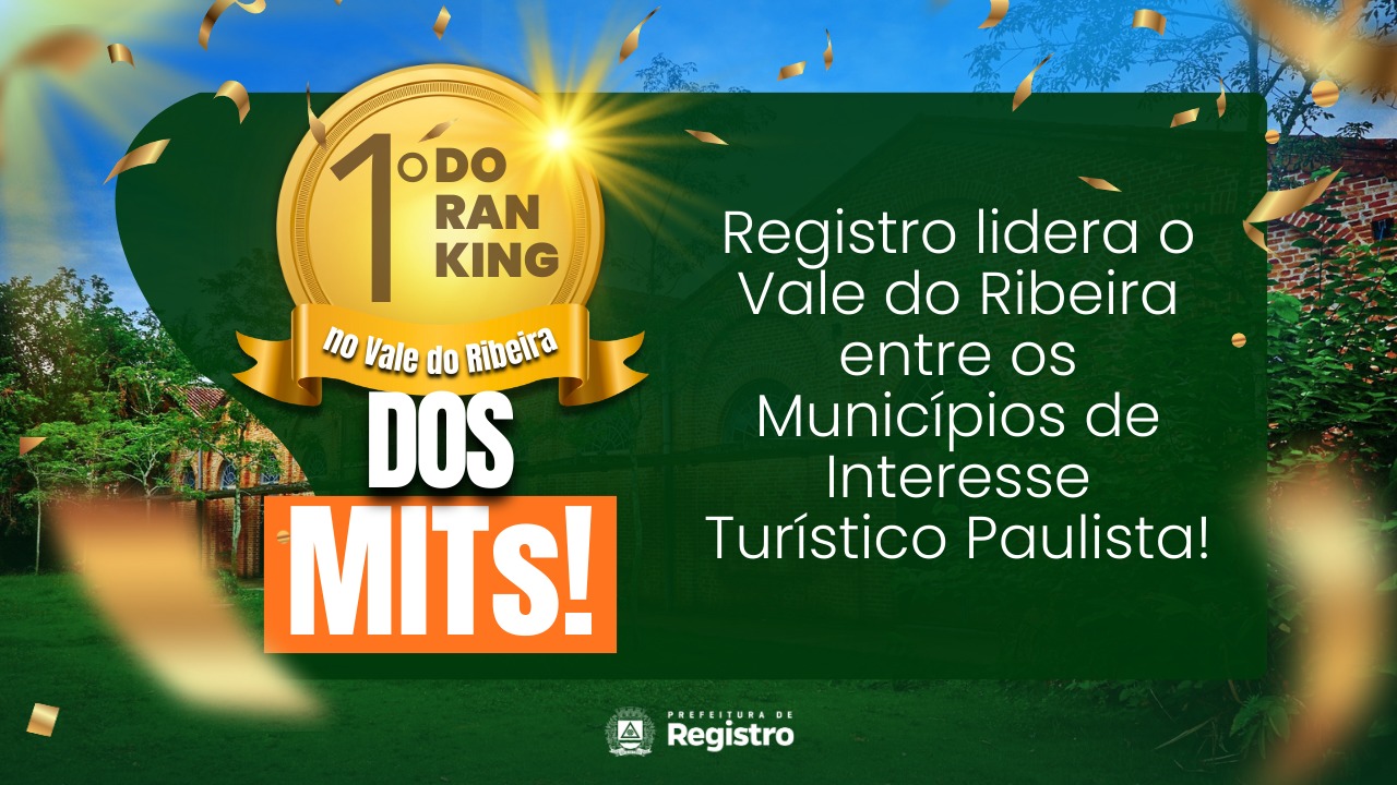 O Governo do Estado de São Paulo divulgou o novo ranqueamento trienal dos Municípios de Interesse Turístico (MITs) e Estâncias Turísticas, e o balanço é positivo para Registro. O município alcançou a 23ª colocação no estado, consolidando-se como a cidade melhor posicionada em todo o Vale do Ribeira nesta categoria.