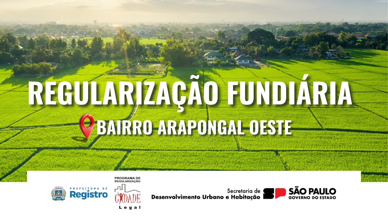 A Prefeitura de Registro (SP) dará início, na próxima semana, à terceira etapa do Cadastro Social dos moradores do Arapongal Oeste, parte do processo de Regularização Fundiária Urbana que poderá resultar na emissão de títulos de propriedade para famílias que atendam aos critérios legais. A ação é conduzida pela Secretaria Municipal de Negócios Jurídicos e pela Divisão de Habitação, em parceria com o Programa Cidade Legal, do Governo do Estado.